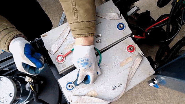 6.連接線黑色端接電池藍色端口,擰緊螺絲